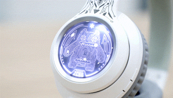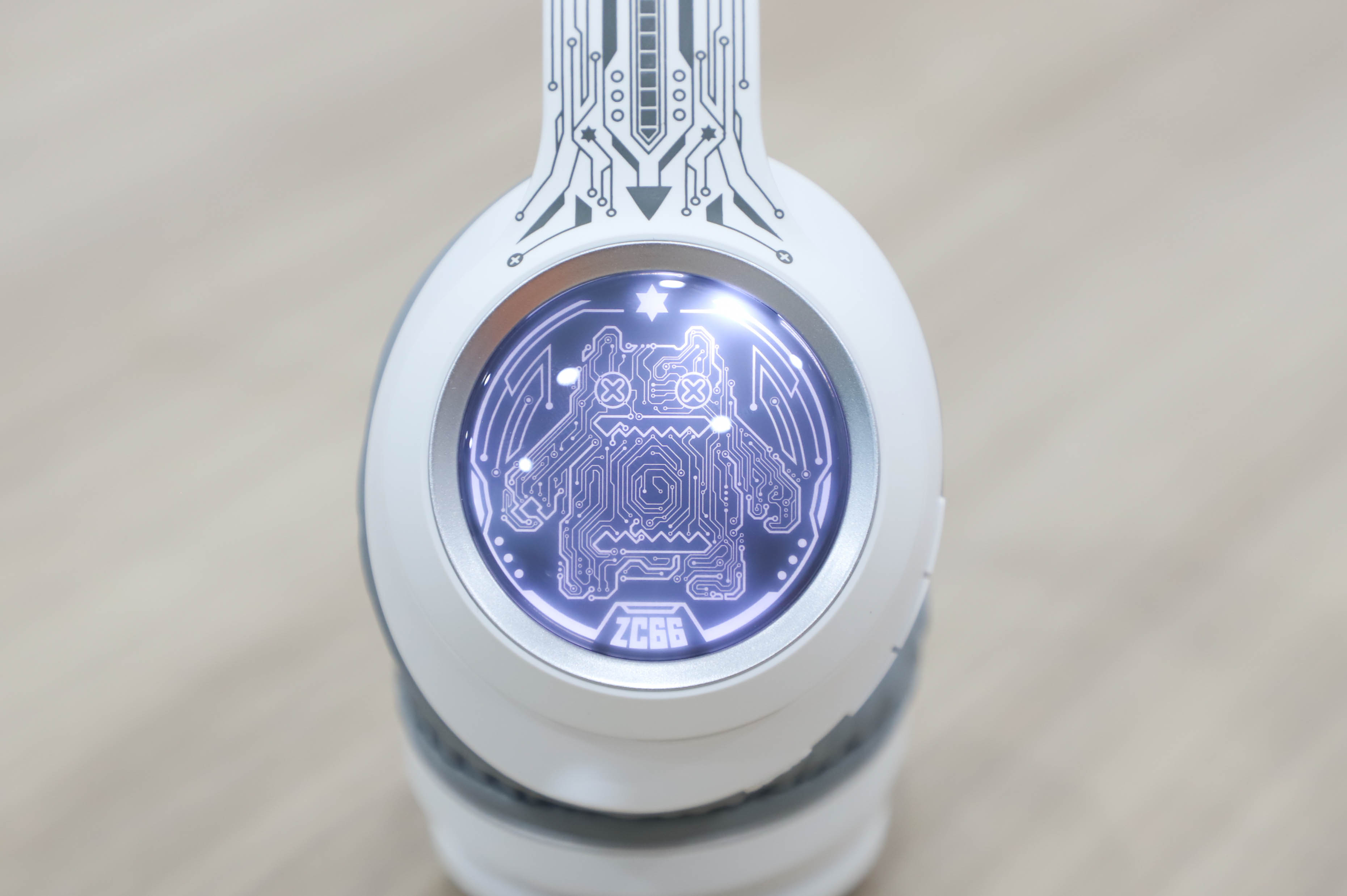 其中左侧耳罩图案做了低可视化设计,同时配备白色灯光,灯光点亮后会清晰出现一个魔鬼猫的形象,这个小细节还是蛮有意思的。