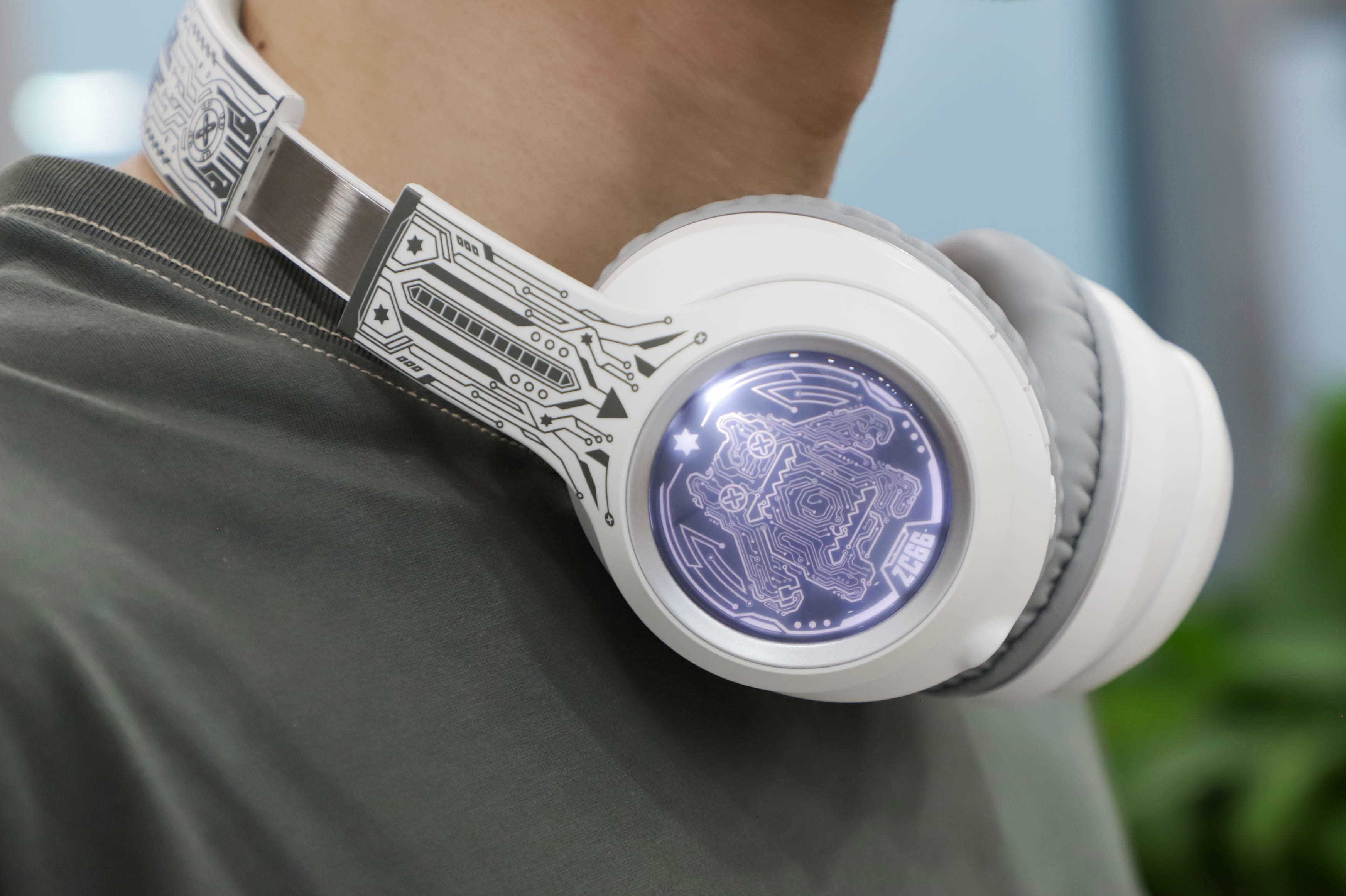 播放状态下,耳罩灯光为呼吸效果,配合内置魔鬼猫图案,效果炫酷。不用的时候,还可以把耳机戴在脖子上当潮流装饰品。