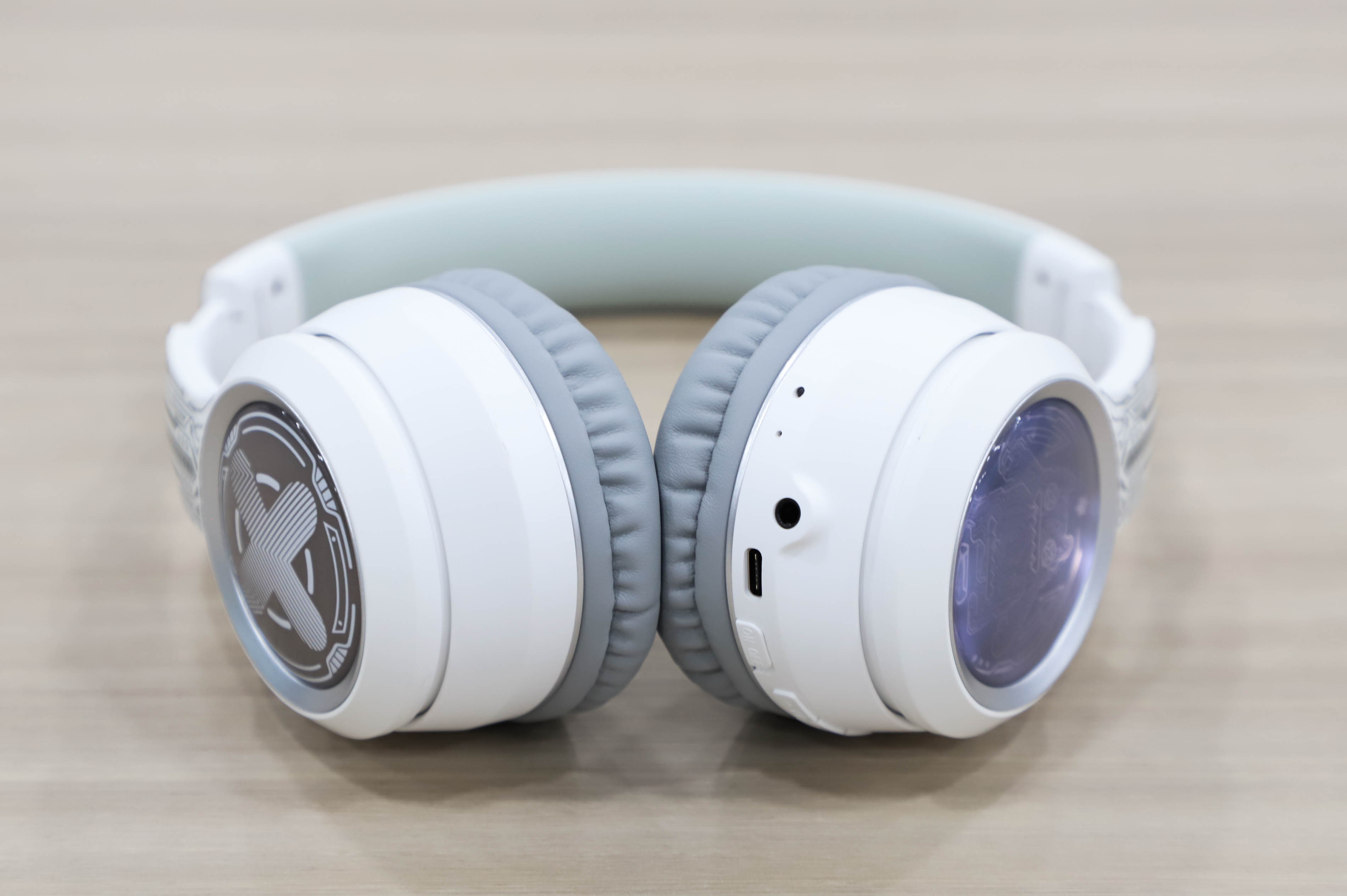 有线模式需配合随机附赠的3.5mm音频线使用,耳机通过3.5mm音频接口接上设备就能直接听歌,没电的时候也不用担心无法使用,不过该模式下没有灯光效果。