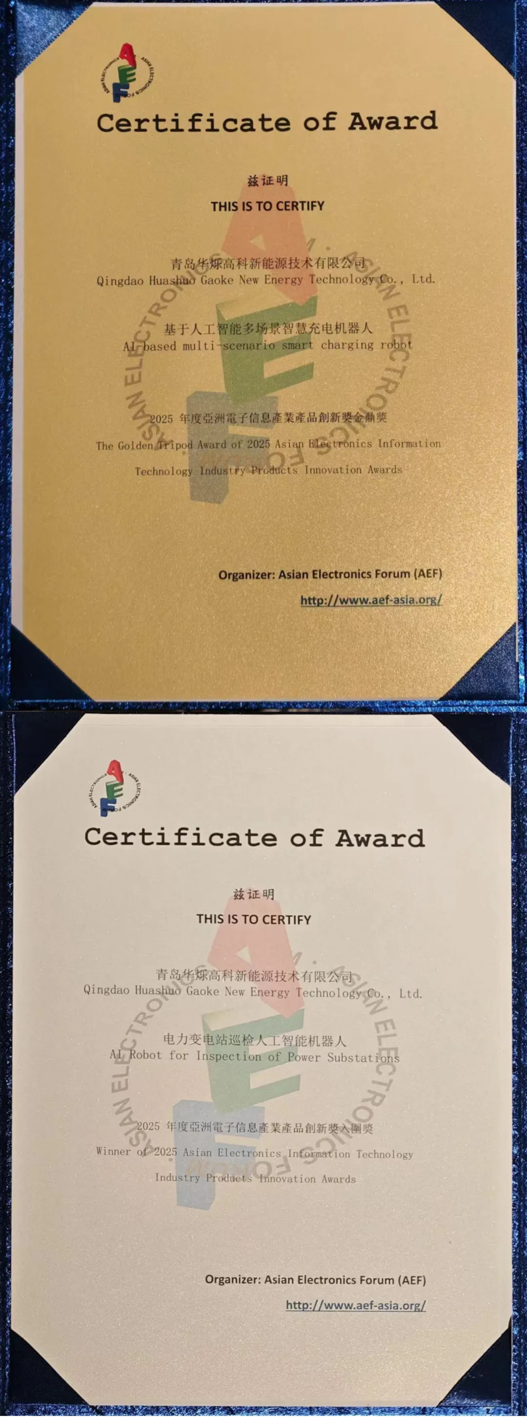 在“2025亚洲电子信息产业产品创新奖颁奖盛典”上,公司两款产品经过激烈角逐在近百款产品中脱颖而出荣获大奖,其中基于人工智能多场景智慧充电机器人荣膺2025年度亚洲电子信息产业产品创新奖金鼎奖,公司电力变电站巡检人工智能机器人荣获2025年度亚洲电子信息产业产品创新奖入围奖,荣誉实至名归。