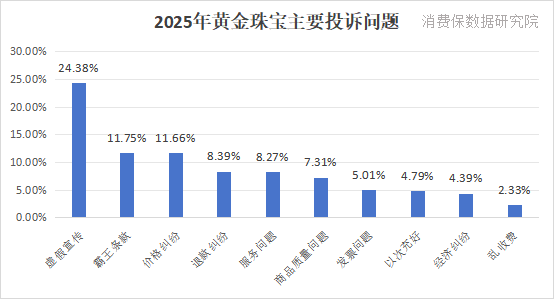 根据消费保平台统计,2025年黄金珠宝相关投诉达到6874件,用户主要投诉问题集中在虚假宣传、霸王条款和价格纠纷;投诉量较多的品牌为中国黄金、周六福和老凤祥。